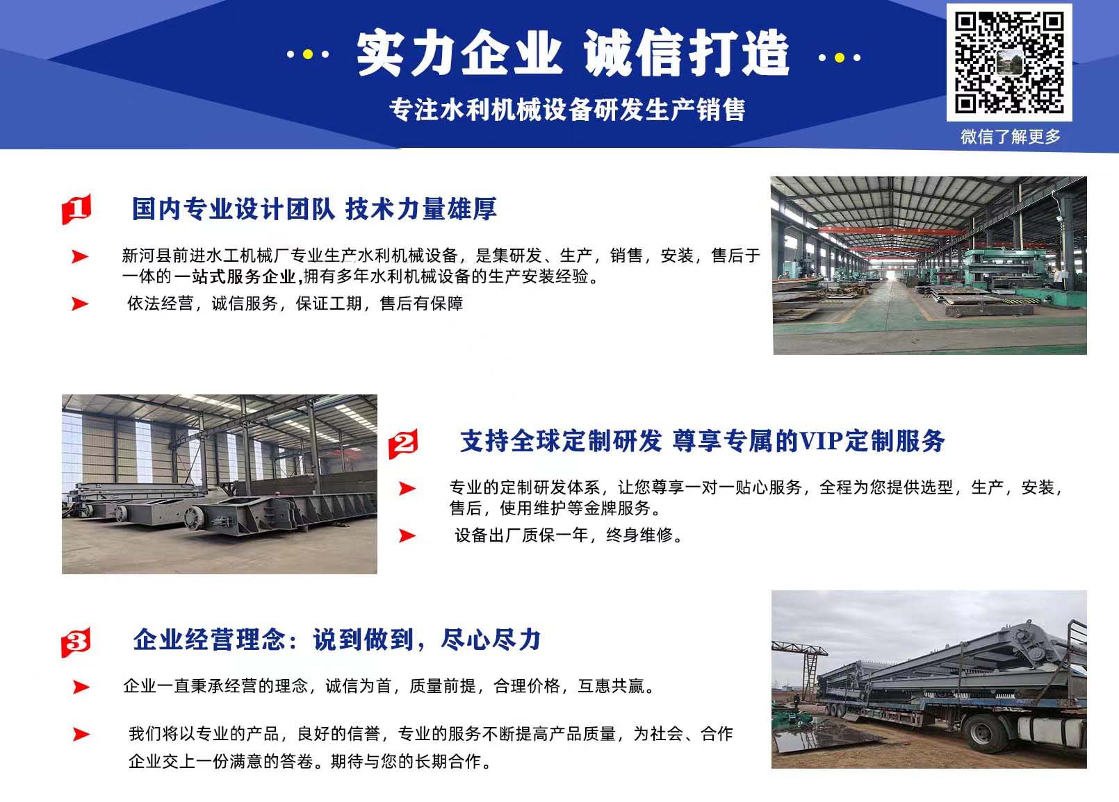 前進水工優(yōu)勢:具有專業(yè)研發(fā)團隊,精湛的制造工藝,嚴(yán)謹(jǐn)?shù)臋z驗技術(shù),完善的售后服務(wù)
